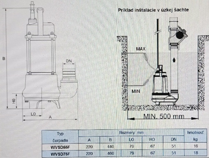 Čerpadlá ponorné kalové Kalové čerpadlo SHIMGE WVSD 75F, 250l/min., 0,75kW, 6-8m výtlak Cena nájmu: 15,00€ s DPH/deň