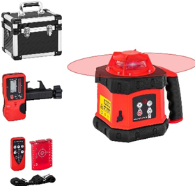Rotačný laser červený samonivelačný, pr.300m merací rozsah, do 35m, vodotesný, diaľkové ovládanie, -10°až+45°